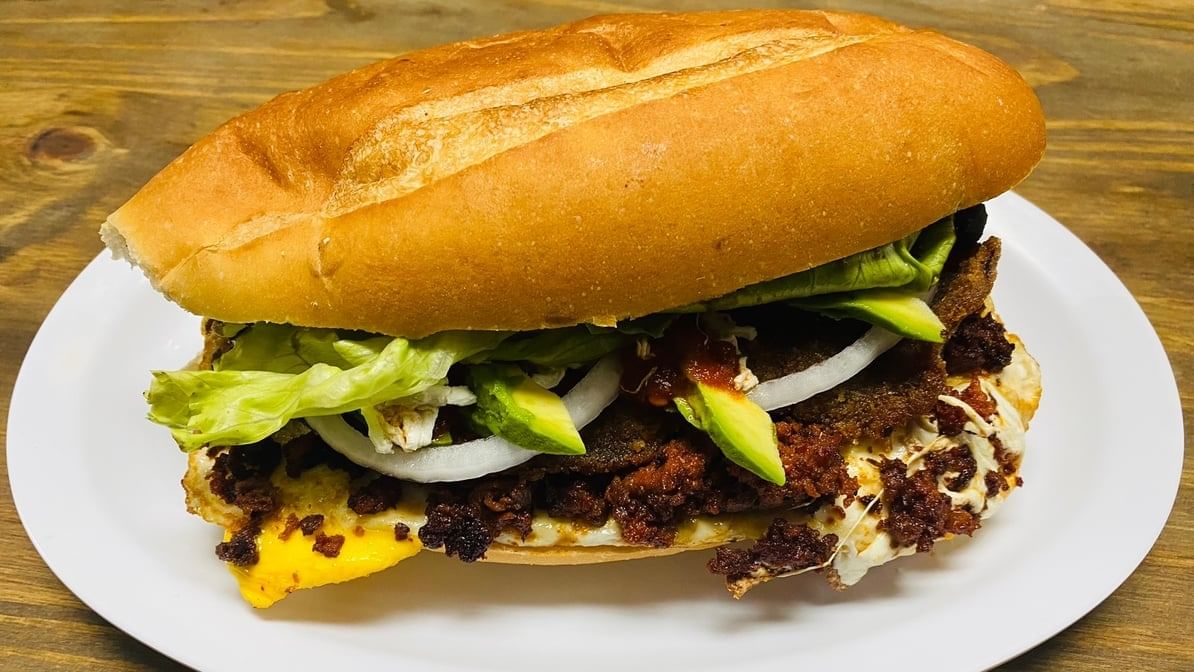 Chicken, mayo, lettuce, onion, tomatoes, ham, fried egg, salchicha, jalapeños & American cheese.