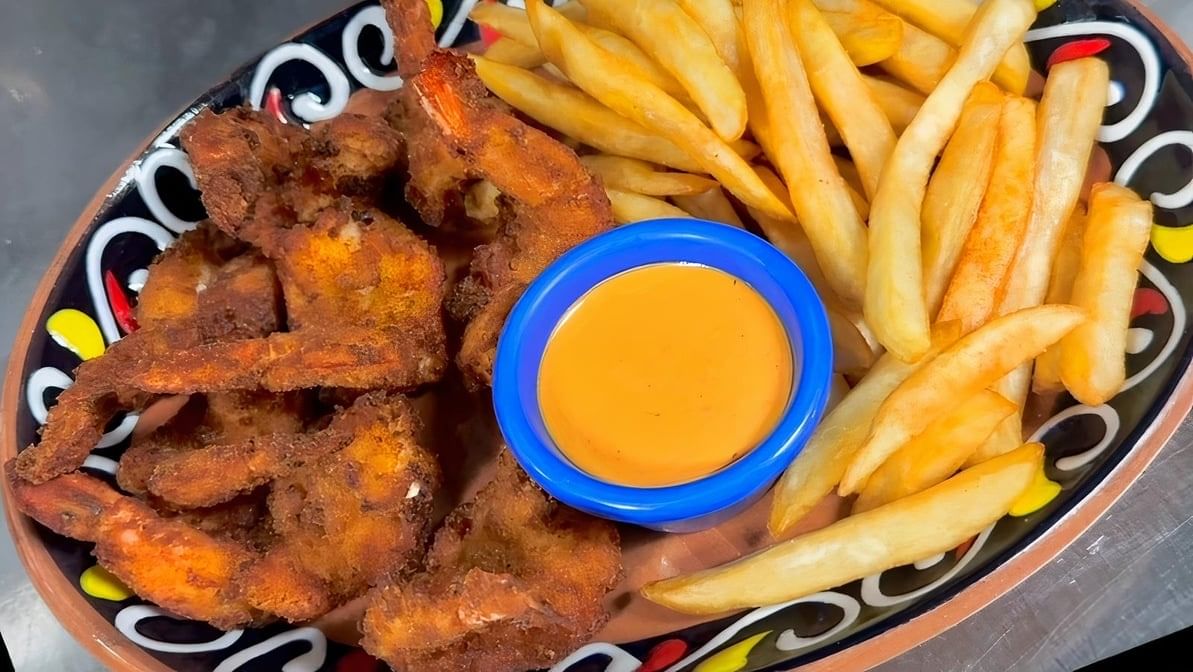 8pcs jumbo shrimps coated in seasoned breadcrumbs, deep-fried to golden brown perfection. Served with fries & chipotle or habanero mayo
