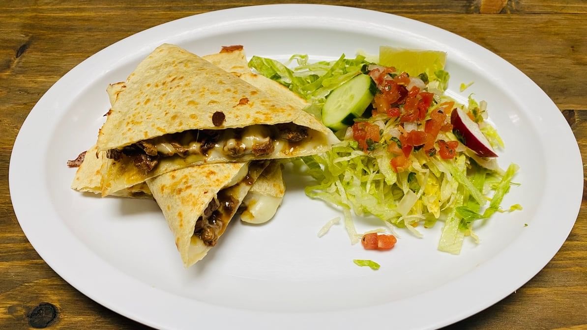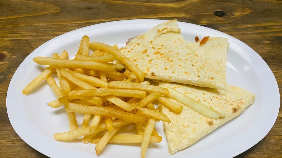 One flour tortilla with Monterey Jack cheese & choose your meat. Served with one side; salad, rice, or fries.