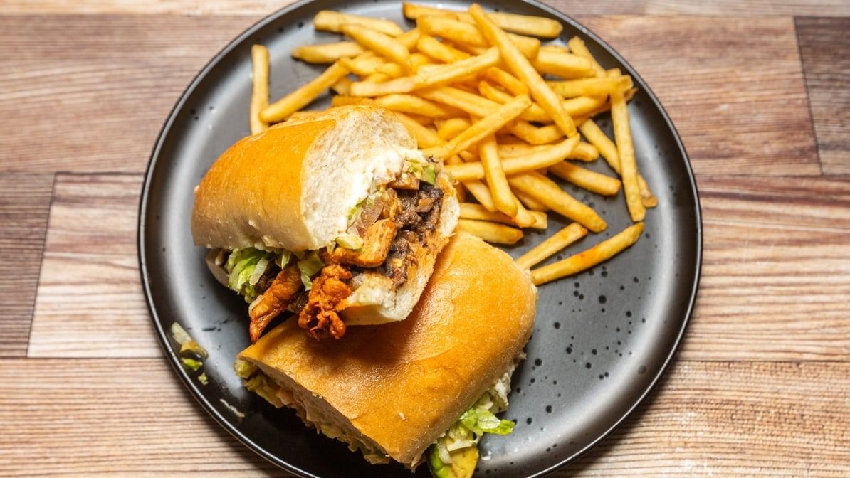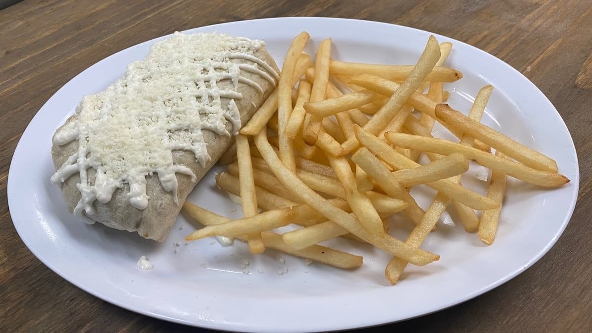 Comes with refried beans, mayo, lettuce, onions, tomatoes, queso fresco, avocado & chipotle. Served with fries.