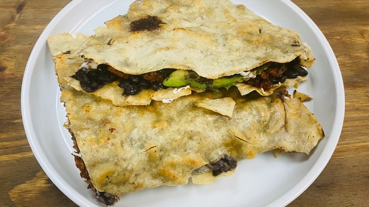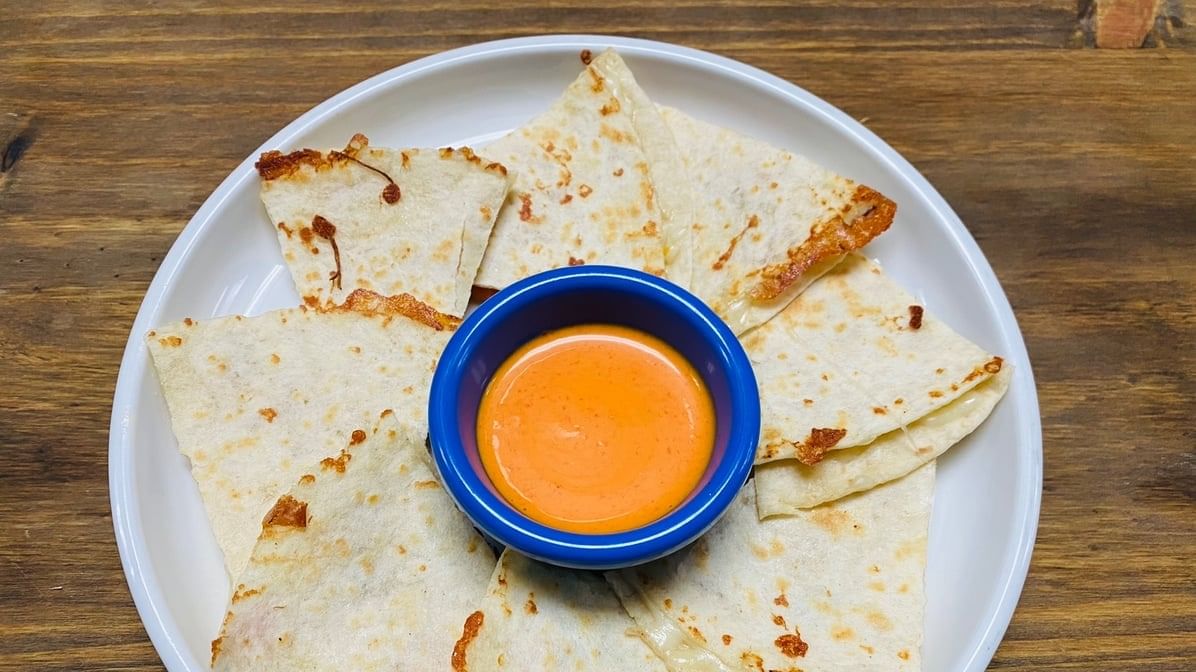 Pan-fried shrimp, colorful pepper & onions on 8" flour tortilla with Monterey Cheese, served with agave Chipotle mayo or agave habanero mayo
