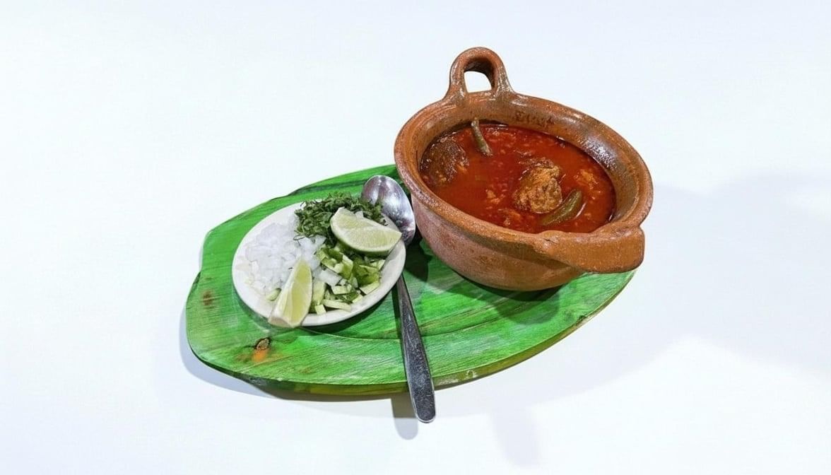 It’s a spicy mexican beef & vegetables soup. The bone-in beef ribs are cooked in the broth, giving the soup a rich & meaty flavor. Served with fresh diced onions, jalapeño, cilantro & tortillas.