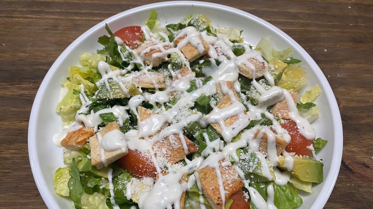 Romaine lettuce, grape tomatoes, cotija cheese, and avocado, topped with creamy dressing. Choice of meat