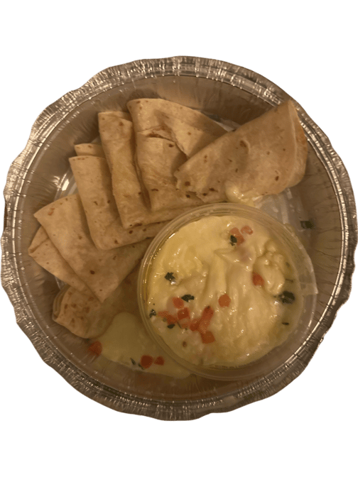 Creamy melted Monterey Jack cheese, topped w/Pico de Gallo. Served on a hot, black iron skillet with a warm, soft flour tortillas.